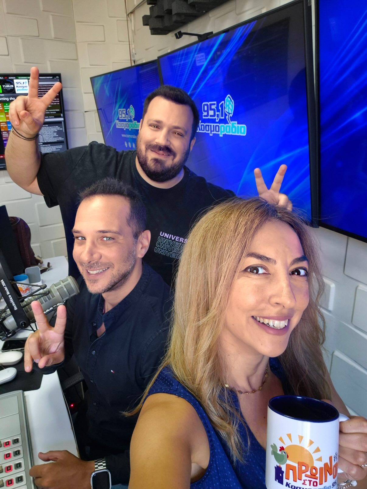 Η Θεσσαλονίκη ξυπνά εδώ και 15 χρόνια, κάθε μέρα με τον πιο κεφάτο τρόπο: το «Πρωινό στο Κοσμοράδιο 95,1» είναι η εκπομπή που έχει γίνει συνήθεια, παρέα και… εθισμός για χιλιάδες ακροατές. Ο Μάνος Βολάνης, η Μιράντα Σμουλιώτη και ο Γιώργος Τσεσμετζής πιάνουν το μικρόφωνο από τις 08:00 μέχρι τις 12:00 και μοιράζουν γέλιο, ρυθμό και θετική ενέργεια που δεν σταματά ποτέ.